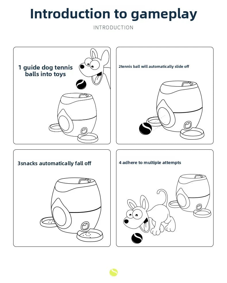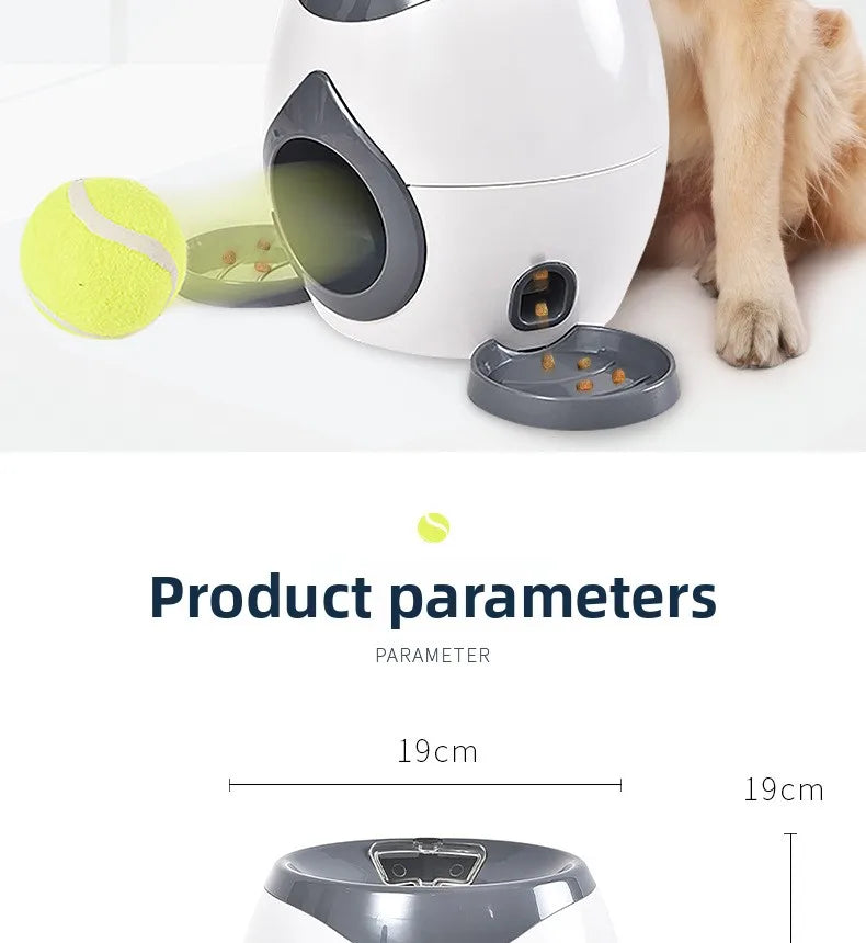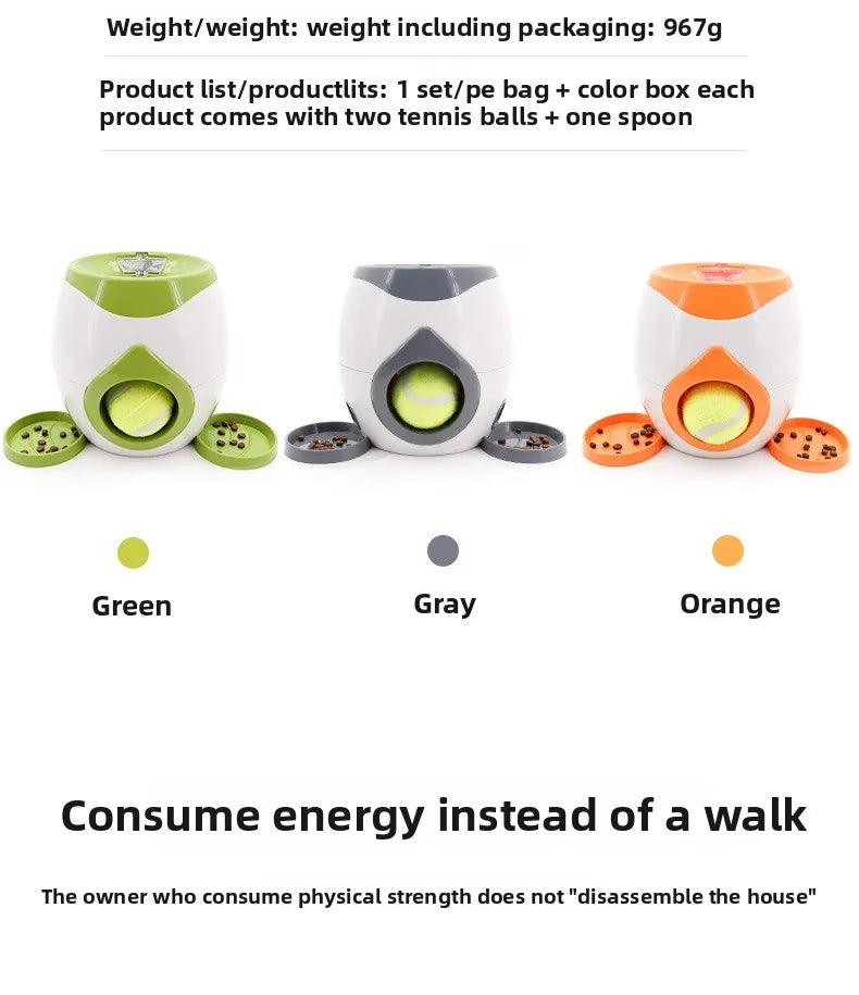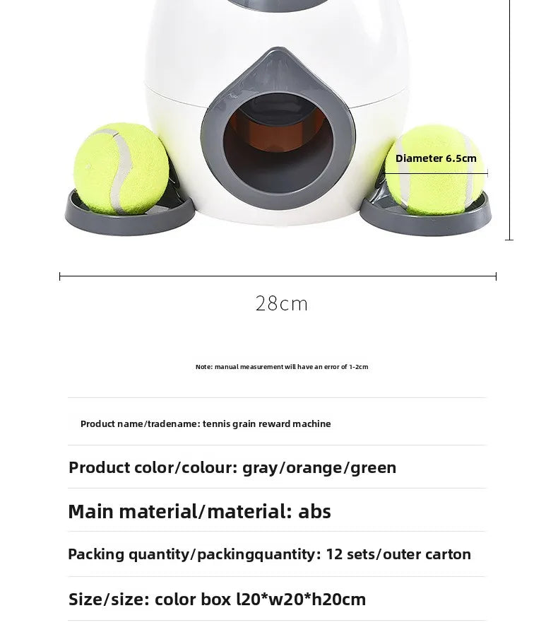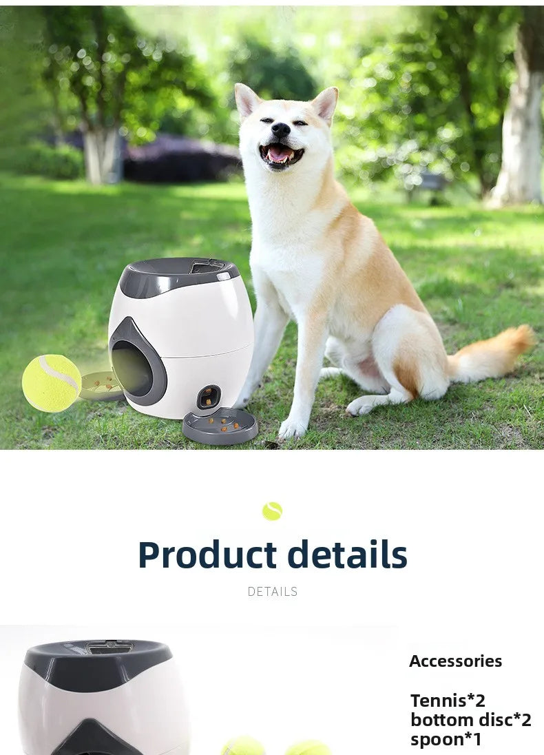 The 2-in-1 Dog Interactive Toy combines a tennis ball launcher and a fun feeding machine. This automatic reward machine is perfect for training and play, allowing your dog to enjoy fetching and feeding in one interactive device.